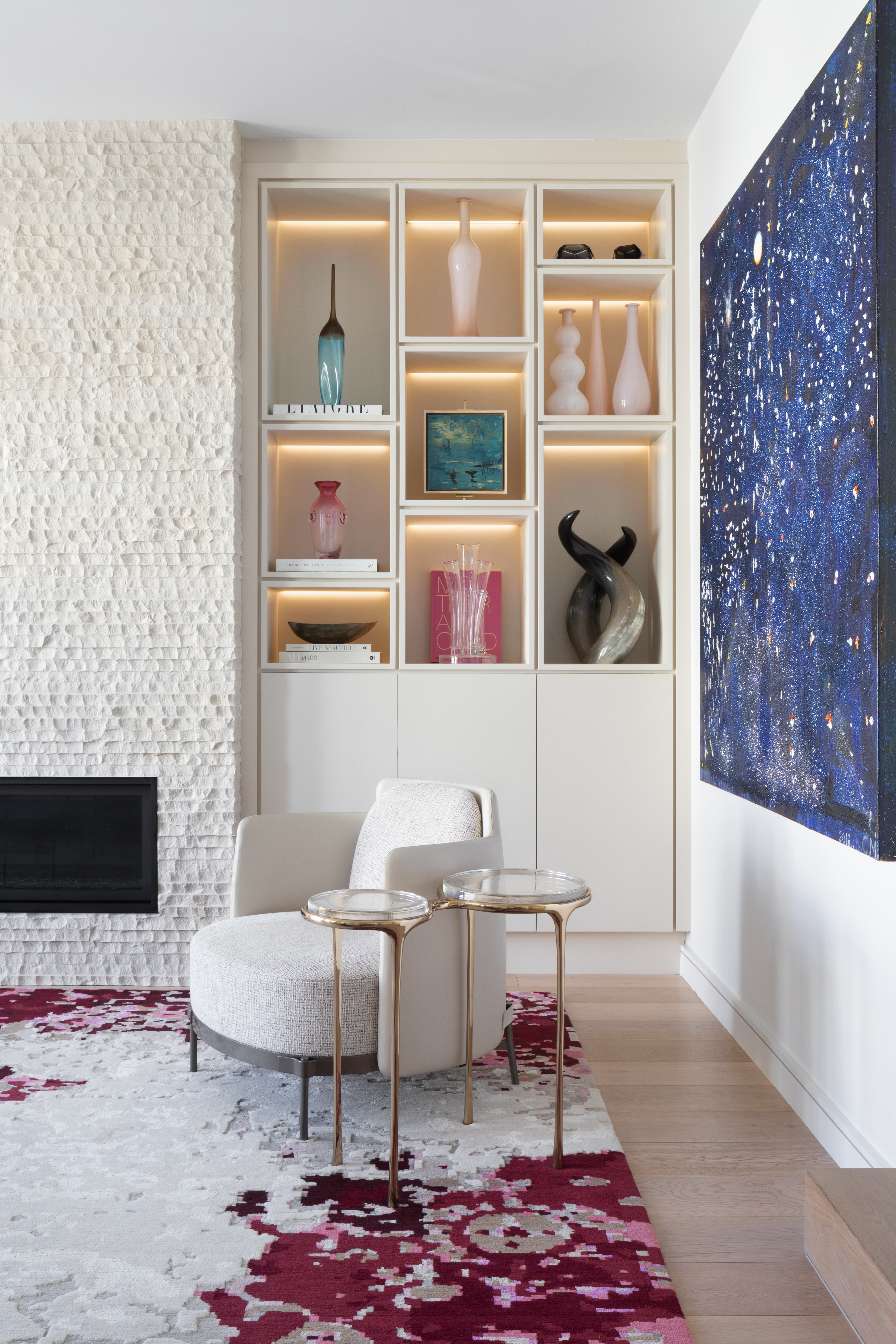 The ZS Residence boasts several distinctive features. An expansive skylight crowns a minimalist oak staircase adorned with glass guardrails, infusing the space with an ethereal quality. Large, south-facing doors on the second and third levels optimize daylight, fostering a seamless indoor-outdoor connection. A re-imagined built-in cabinet system in the living room modernizes the ambiance while discreetly housing media equipment.